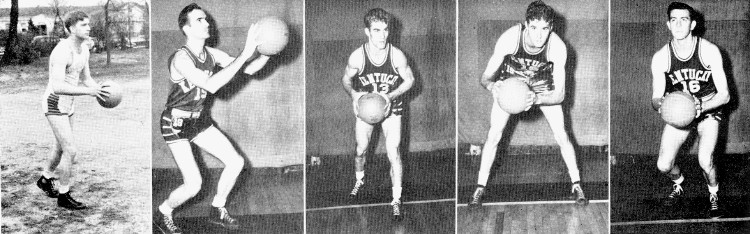 Ermal Allen and Waller White at forwards, Mel Brewer in the pivot position, and Captain Carl Staker and Marvin Akers at guards were the 'Cats who started the majority of the games. Captain Staker's steady floor work and leadership, Akers' long shots, Allen's speed and offensive punch, Brewer's rebounding and White's point-making is the "behind-the-scenes' answer to Kentucky's great record.