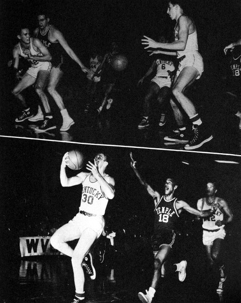 A tremendous, but short-lived scoring record set the Cats on the way to their undefeated 25-game season -- and what a tremendous start it was ! All American Cliff Hagan set a new S.E.C. record with a 51-point total, showing the Conference officials and N.C.A.A. officials the Cats had not been idle during their most conspicuous absence. They were out for some hides. Kentucky 86, Temple 59.
