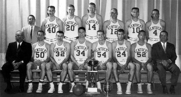 Front Row (l to r):  Head Coach Adolph Rupp, Adrian Smith, John Crigler, Ed Beck, Don Mills, Johnny Cox, Vernon Hatton, Asst. Coach Harry Lancaster  |