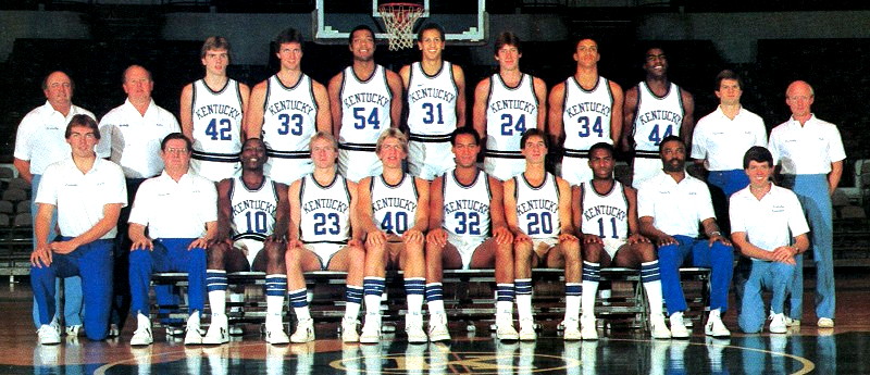 Seated (l to r):  Volunteer Assistant Jeff Riley, Head Coach Joe B. Hall, Dirk Minniefield, Roger Harden, Troy McKinley, Derrick Hord, Jim Master, Dicky Beal, Associate Coach Leonard Hamilton, Student Manager Roger Thomas  |