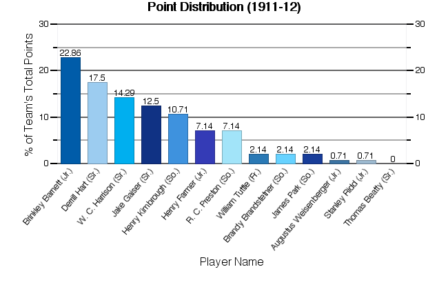 | Brinkley Barnett | 9 | 12 | 40 | 64 | 7.11 |