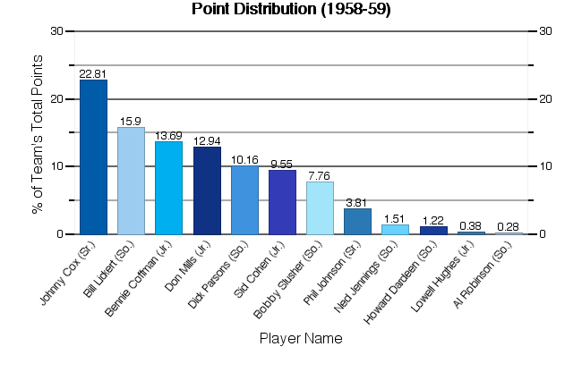 | Player | Games Played  | FG | FGA | % | FT | FTA | % | Total Rebs  | F | Total Pts  | PPG |