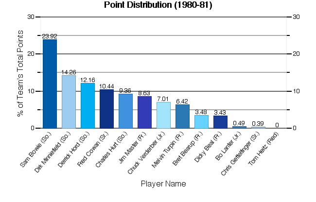 | Dirk Minniefield | 28 | 890 | 118 | 213 | 55.4 | 55 | 63 | 87.3 | 79 | 151 | 35 | - | 79 | 71 | 291 | 10.39 |
