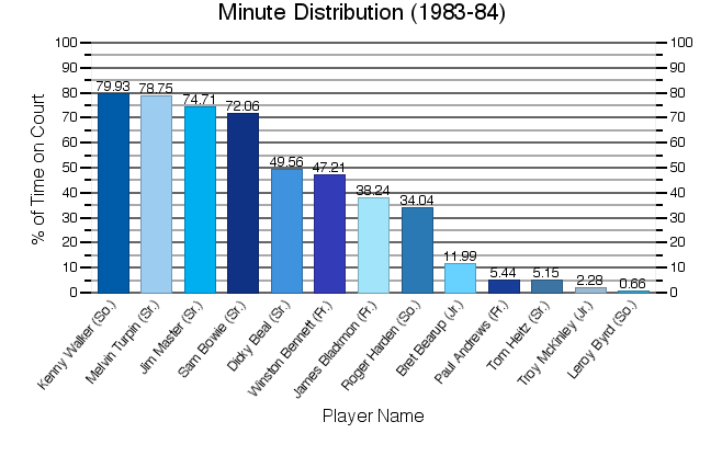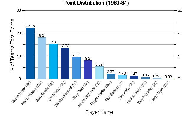 | Melvin Turpin | 34 | 1071 | 224 | 378 | 59.26 | 70 | 94 | 74.47 | 217 | 33 | 24 | 53 | 85 | 58 | 518 | 15.24 |