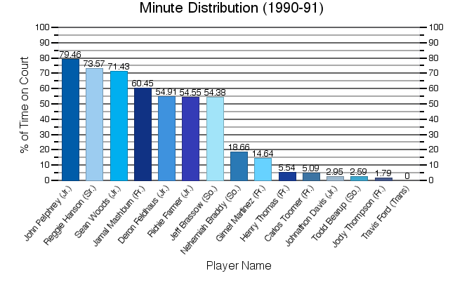 | John Pelphrey | 28 | 890 | 131 | 303 | 43.23 | 62 | 164 | 37.8 | 80 | 102 | 78.43 | 145 | 86 | 43 | 9 | 89 | 80 | 404 | 14.43 |