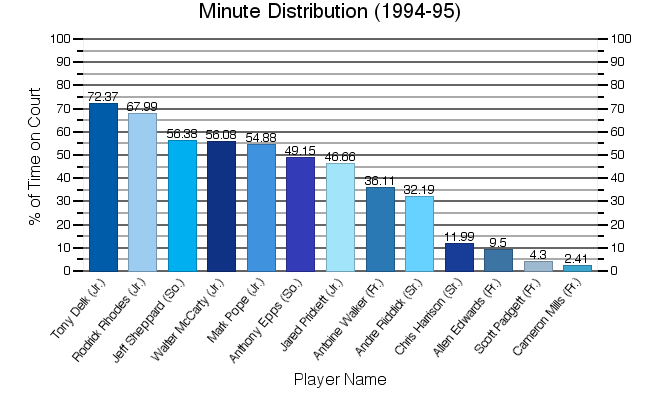 | Tony Delk | 33 | 960 | 207 | 433 | 47.81 | 77 | 197 | 39.09 | 60 | 89 | 67.42 | 77 | 33 | 110 | 65 | 53 | 9 | 67 | 51 | 551 | 16.7 |