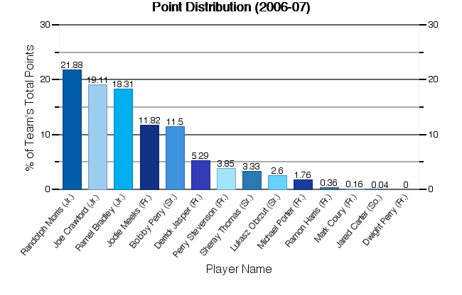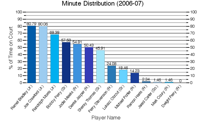 | Randolph Morris | 34 | 937 | 202 | 342 | 59.06 | 0 | 1 | 0 | 142 | 208 | 68.27 | 197 | 67 | 264 | 37 | 26 | 70 | 80 | 74 | 546 | 16.06 |