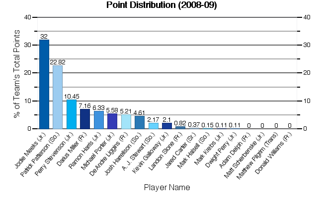 | Darius Miller | 36 | 764 | 66 | 160 | 41.25 | 18 | 55 | 32.73 | 41 | 51 | 80.39 | 80 | 30 | 110 | 72 | 27 | 22 | 92 | 64 | 191 | 5.31 |
