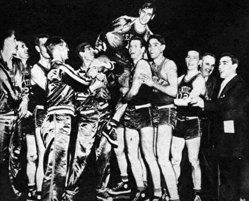 Coach Rupp took the suggestion and Kentucky employed a weaving offense which picked the Illinois defenders apart. First the Wildcats hit from mid-range and then after the Illini defenders came out to pressure, Kentucky passed the ball inside for easy layups.