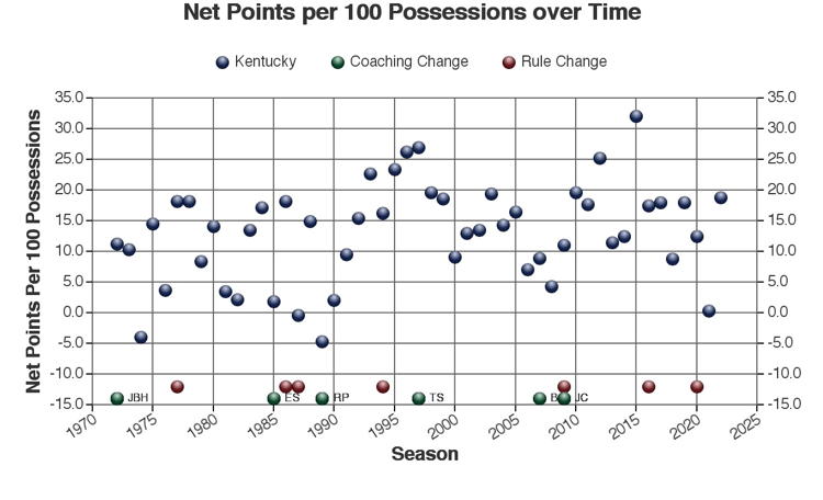 Note: This measure subtracts UK's opponents points per possessions from UK's points per 100 possessions. A positive value indicates an advantage for UK.